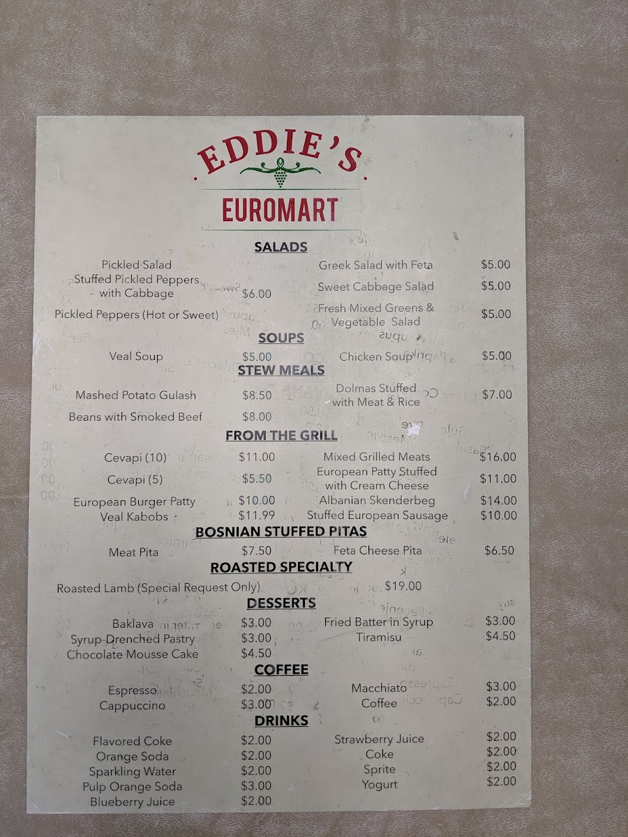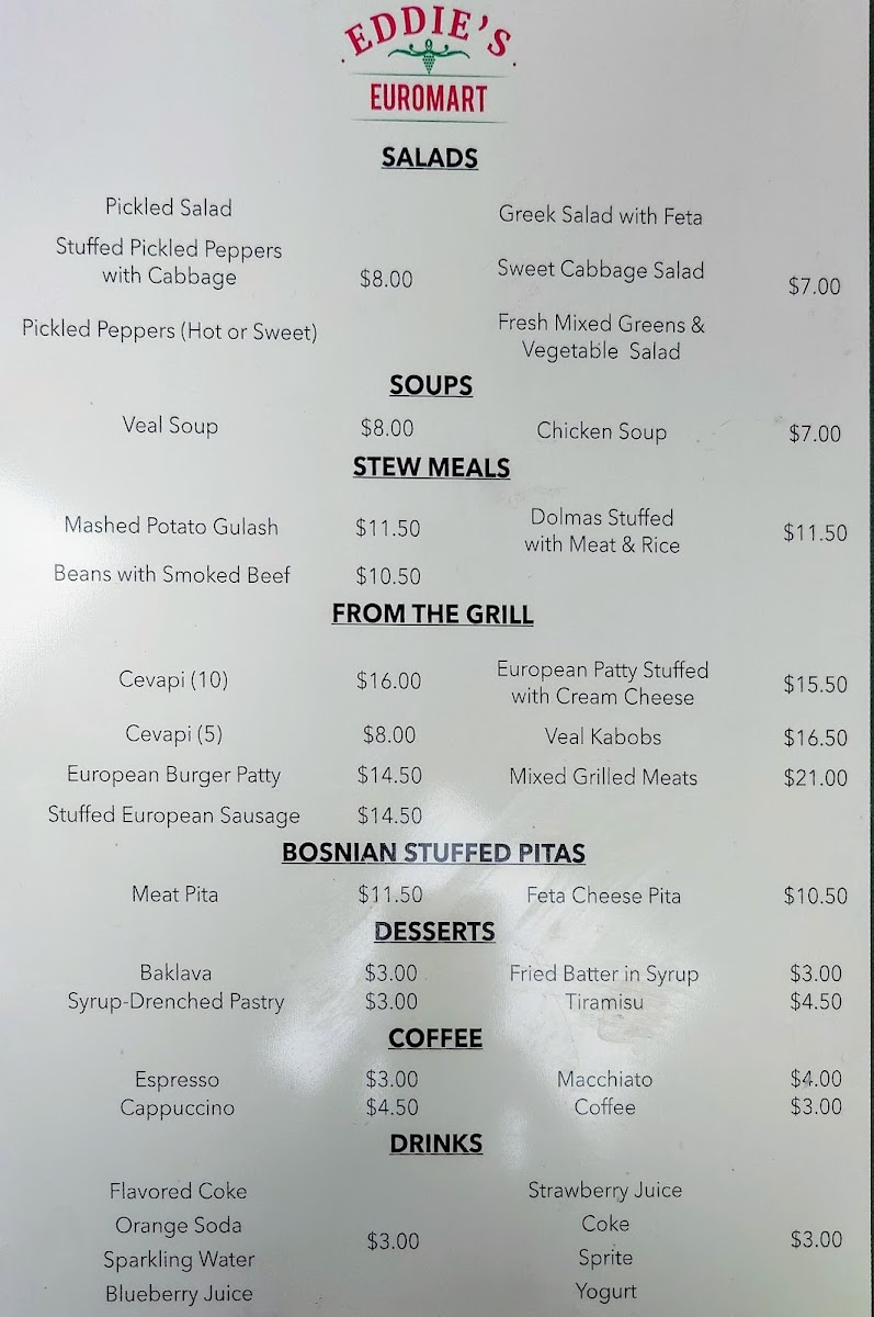 Overall, Eddie’s Euromart offers an extensive and well-rounded menu that combines classic European comfort foods with fresh and flavorful options, making it a top choice for anyone seeking a satisfying meal in Dallas.